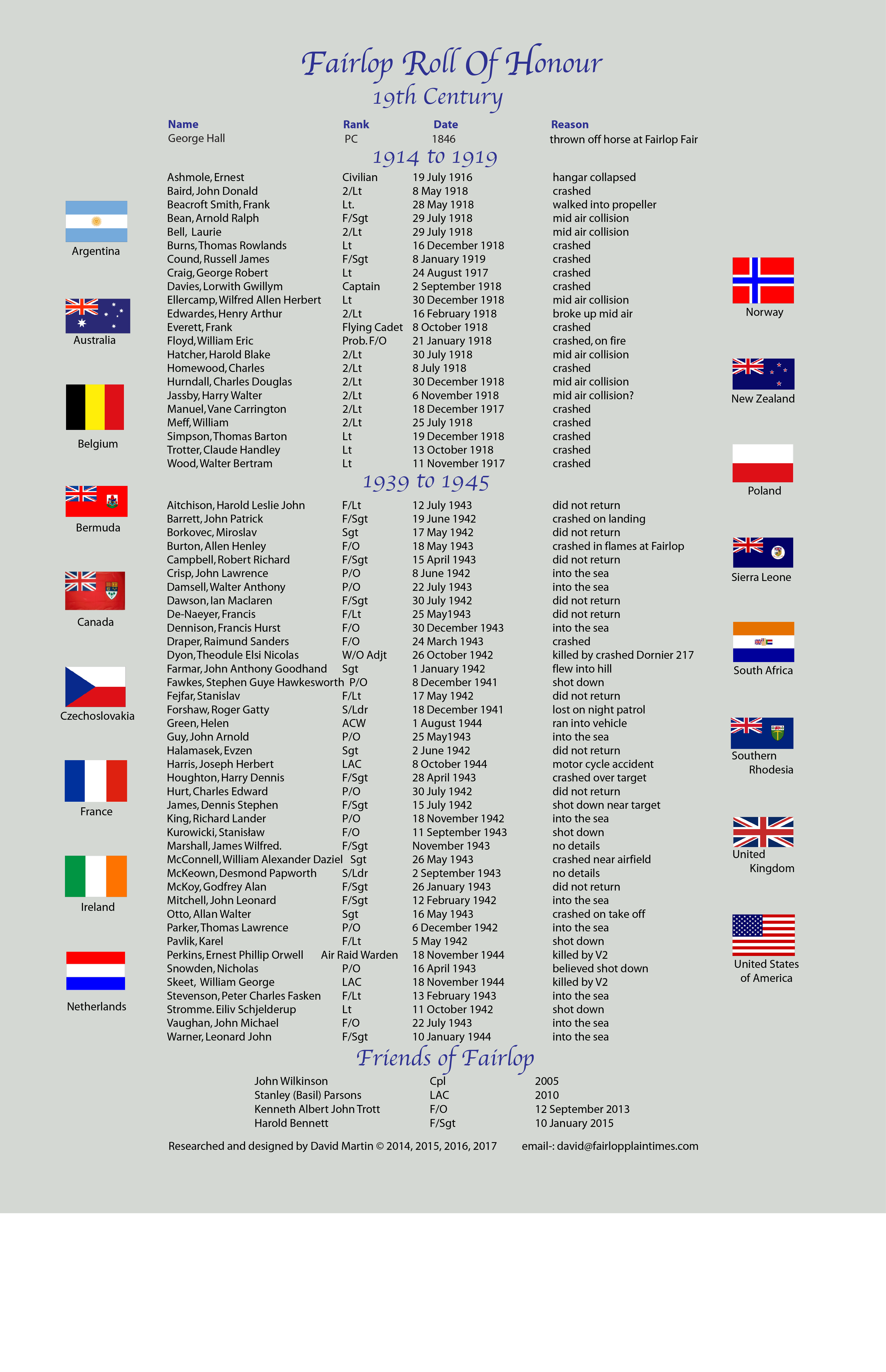 roll of honour july 2017